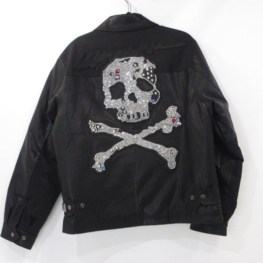 【中古】UNKNOWN LONDON | アンノウンロンドン JEWEL SKELETON LEATHER JACKET レザー ブラック サイズ:M