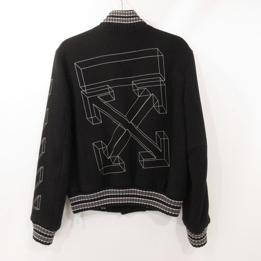 【中古】OFF-WHITE | オフホワイト 3D LINE SKINNY VARSITY JACKET スタジャン OMEA139E18A32002 並行品 ブラック サイズ:S