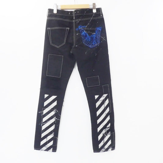 【中古】OFF-WHITE | オフホワイト リペア加工ブラックデニム デニムパンツ ブラック