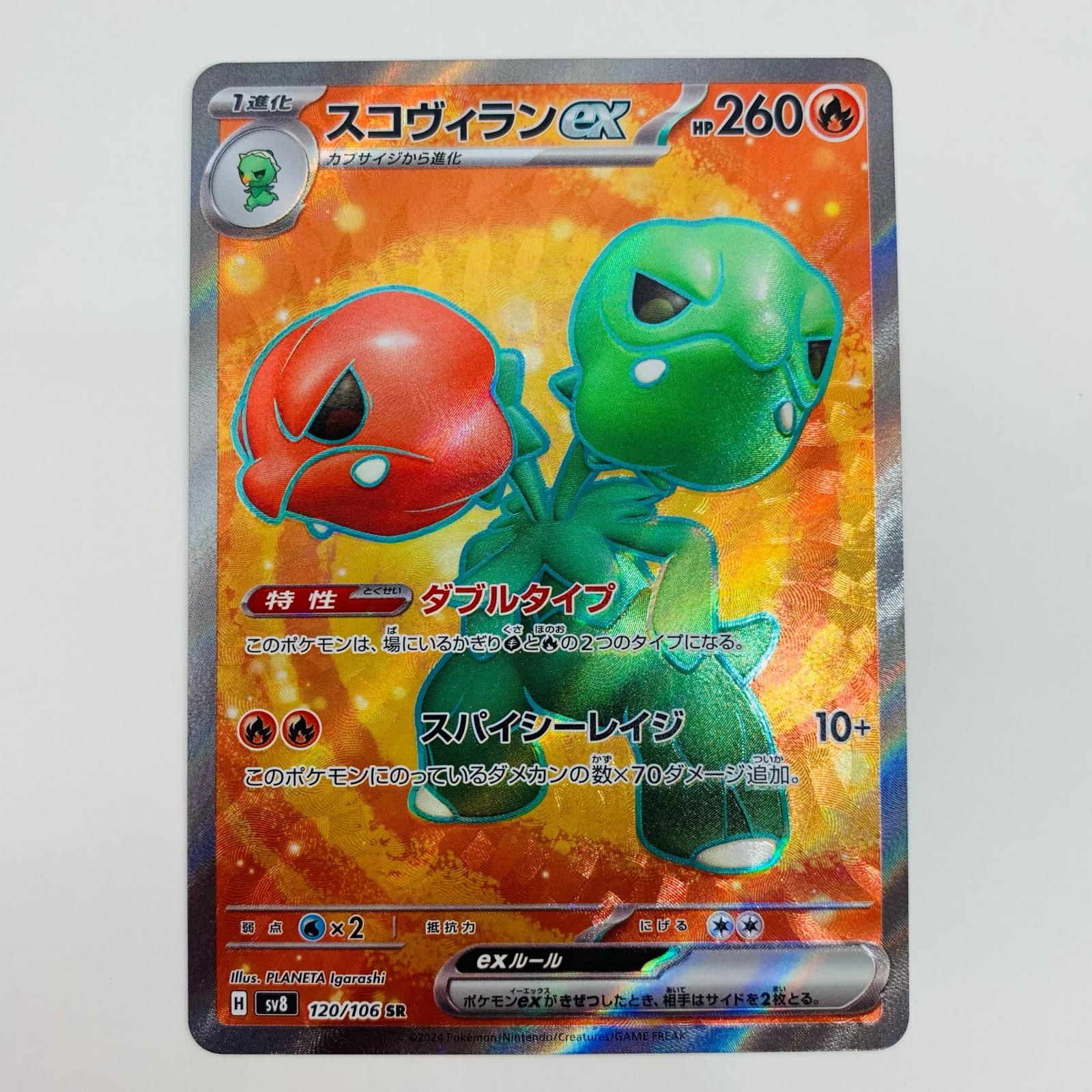 ・型番:SV8-120 ・本体重量:約1g ・カードゲーム名:ポケモンカードゲーム ・グレード鑑定:無 ・キャラクター名:スコヴィランex |