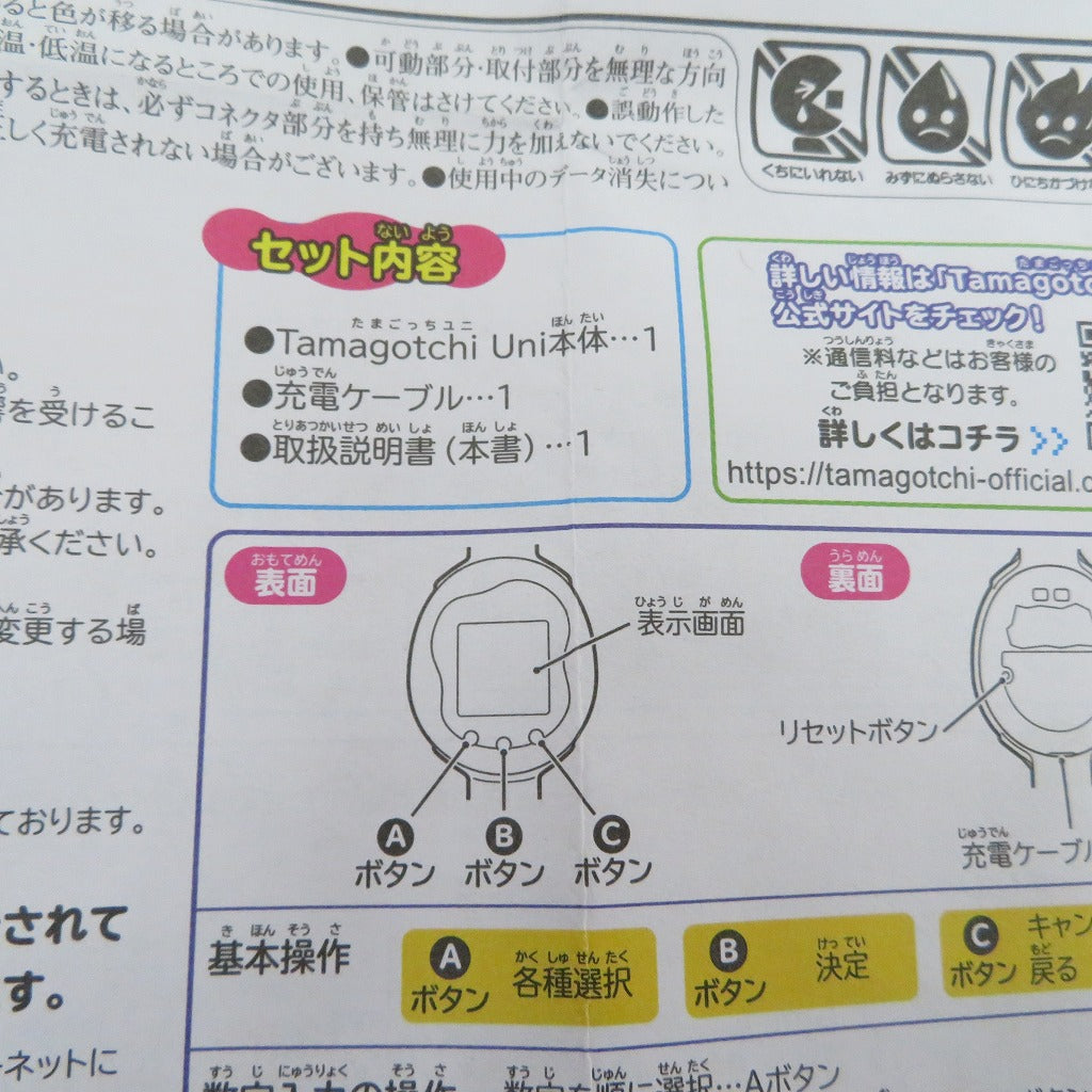 ・本体重量:約109g ・幅:11cm ・高さ:11cm ・奥行:7cm ・作品名:たまごっち ・キャラクター名:たまごっち ユニ |