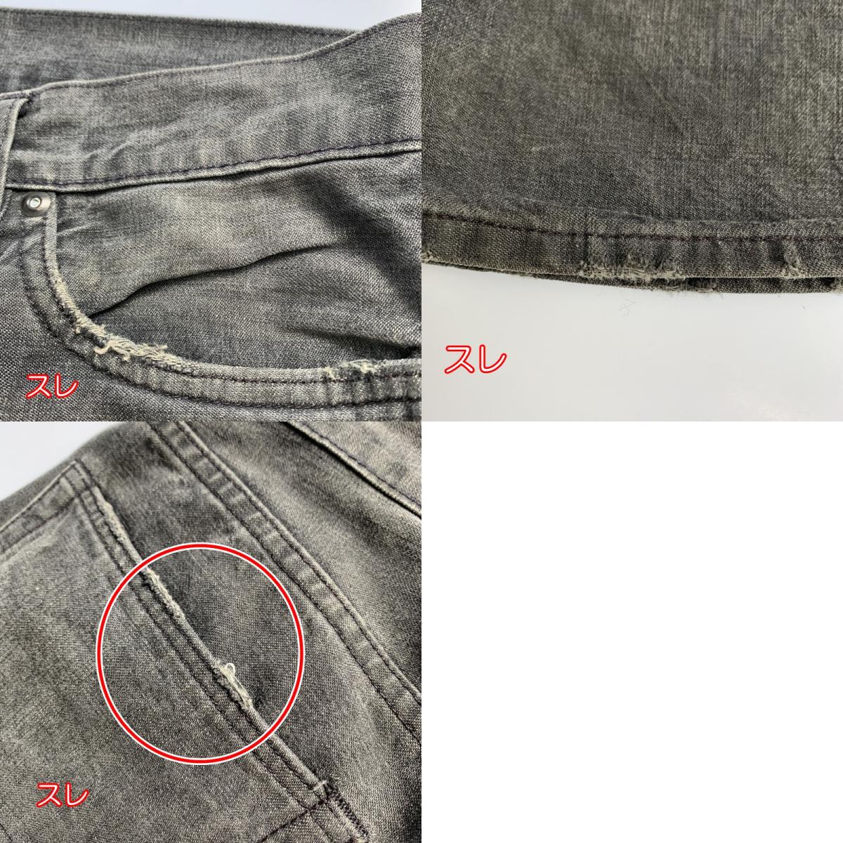 全体的なUSED感がございます。< 【 主なダメージ箇所 】 色褪せあり スレあり シミあり ひざ部分伸びあり 革ラベルにスレ、汚れあり タグに折れあり 28×32 ウエスト:約76cm もも幅:約24.5cm 股上:約23cm 股下:約82.5cm 裾幅:約17.5cm コットン:100% RHD-01 |