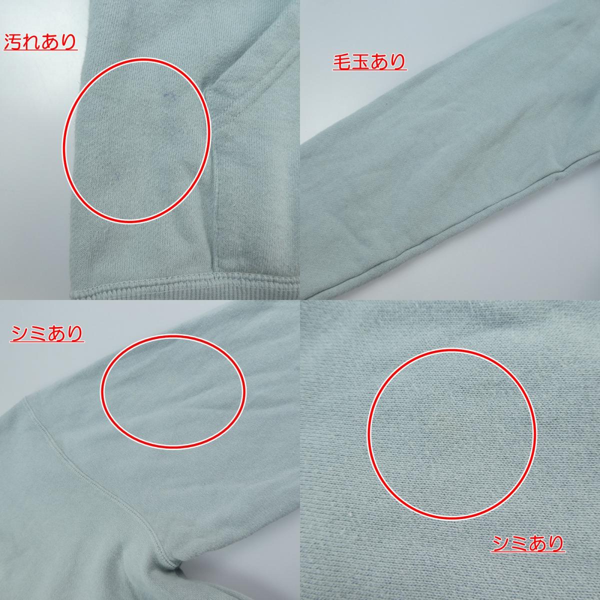 USED感はありますが、まだまだ着用いただける商品です。 【 主なダメージ箇所 】 毛玉多数あり 毛羽立ちあり ヨレあり 汚れあり シミあり M 着丈:約65cm 身幅:約55cm 肩幅:約55cm 袖丈:約62cm ライトブルー 綿100% |