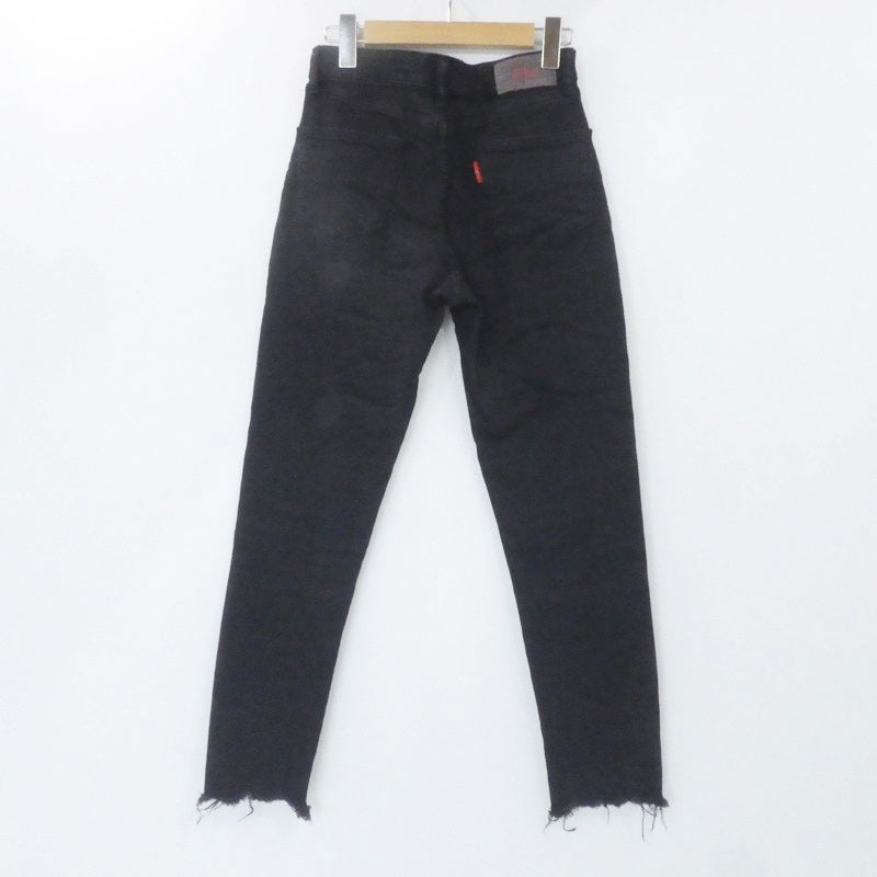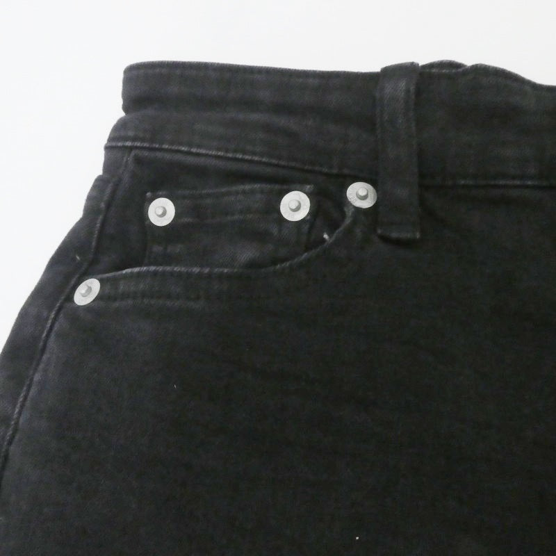 多少のUSED感はありますが、まだまだ着用いただける商品です。 【 主なダメージ箇所 】 所々スレあり。 ラベルに毛羽立ち・スレあり。 25 ウエスト:約66cm もも幅:約23cm 股上:約27cm 股下:約68cm 裾幅:約14.5cm ブラック 綿99%・ポリウレタン1% |