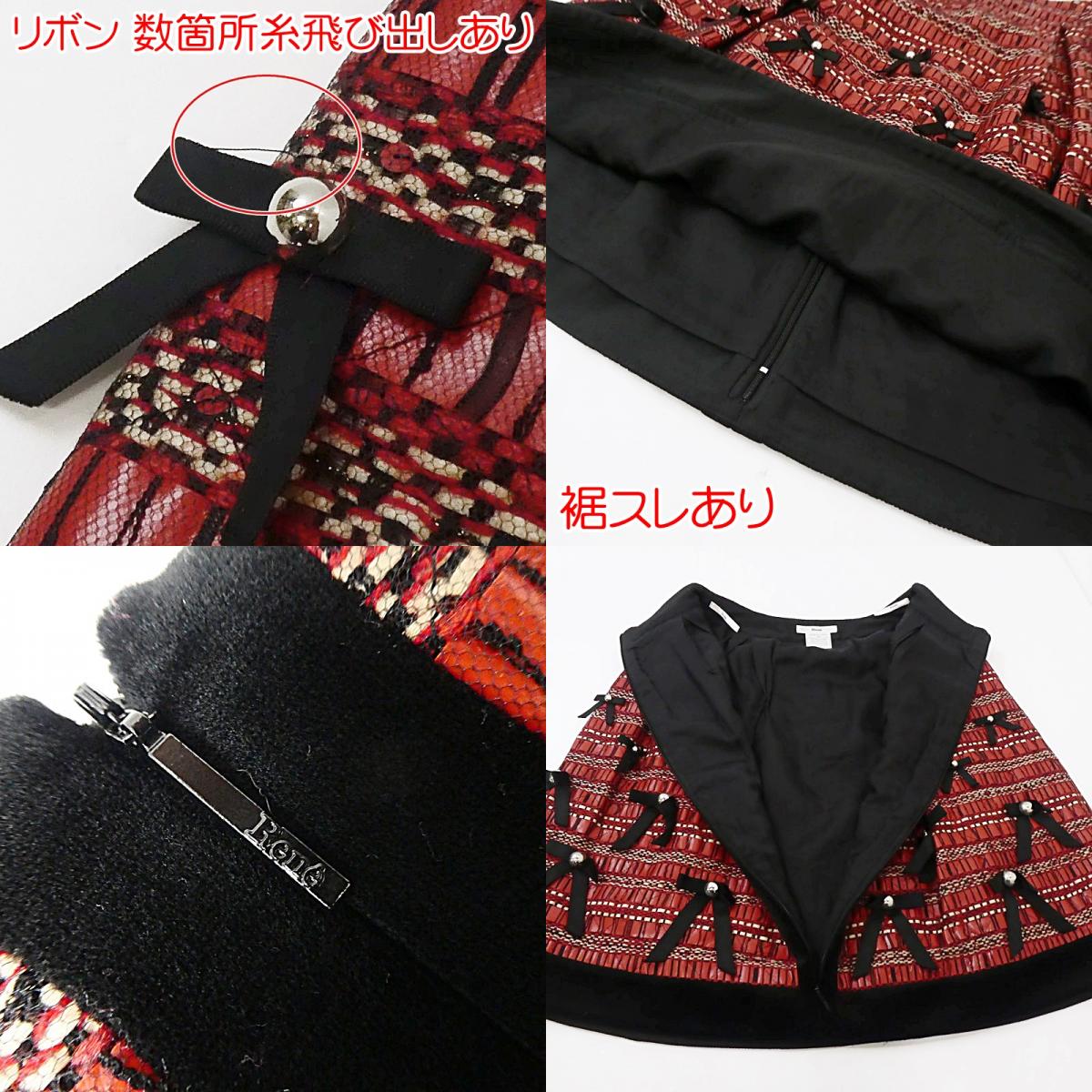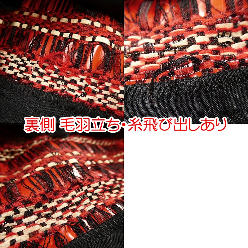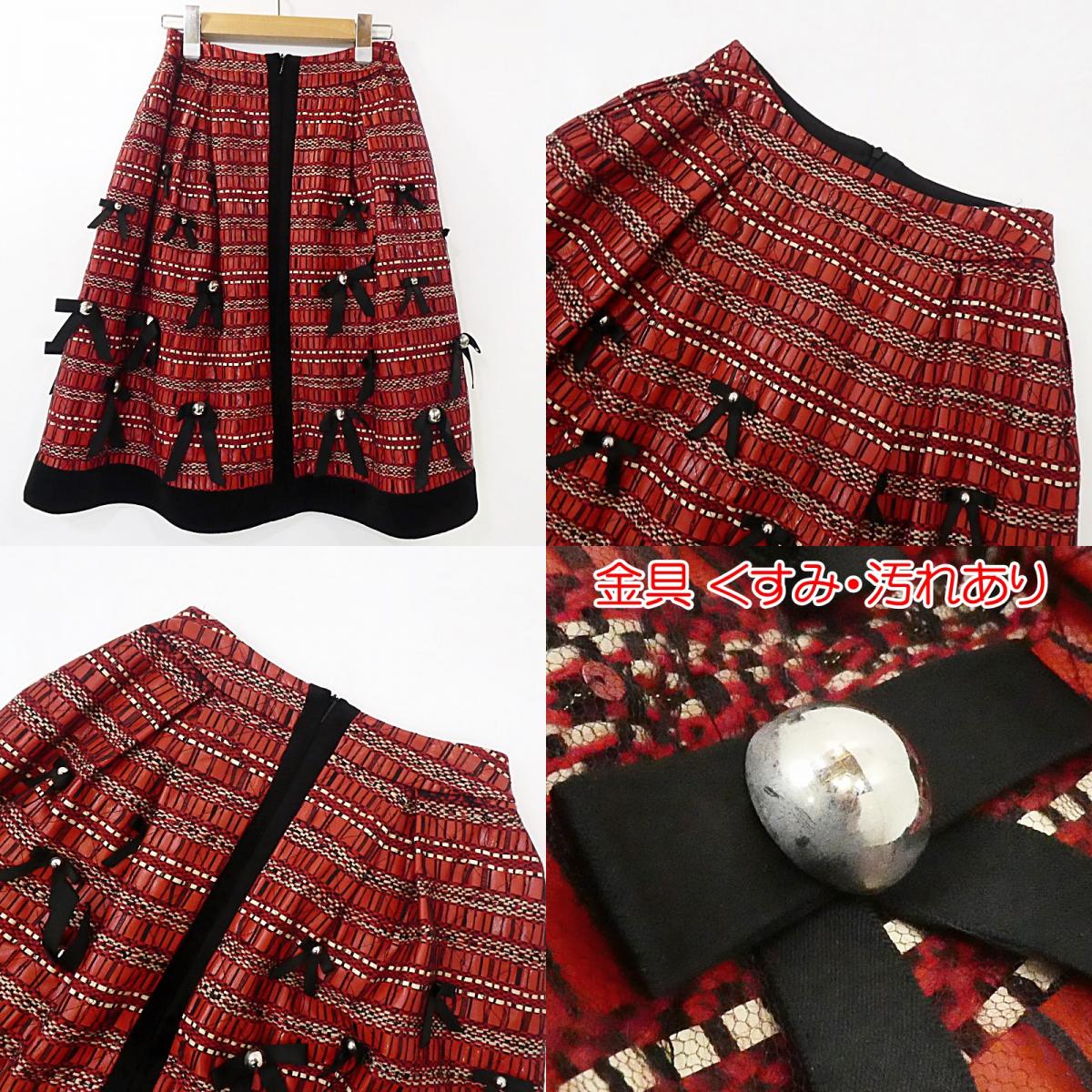 USED感はありますが、まだまだ着用いただける商品です。 【 主なダメージ箇所 】 金具 くすみ・汚れあり ウエスト スレあり 裾 スレあり リボン 数箇所糸飛び出しあり リボン 補修跡あり 内側 糸つれ・穴・薄汚れあり 裏側 毛羽立ち・糸飛び出しあり 32 ウエスト:約62cm 総丈:約59cm レッド 【表地】 (本体) ナイロン 40% ポリ塩化ビニール 30% モヘヤ 15% アクリル 15% (チュール) ナイロン 100% 【別生地】 (表面) トリアセテート 70% ポリエステル 30% (裏面) ポリエステル 65% レーヨン 35% (裏地) キュプラ 100% |