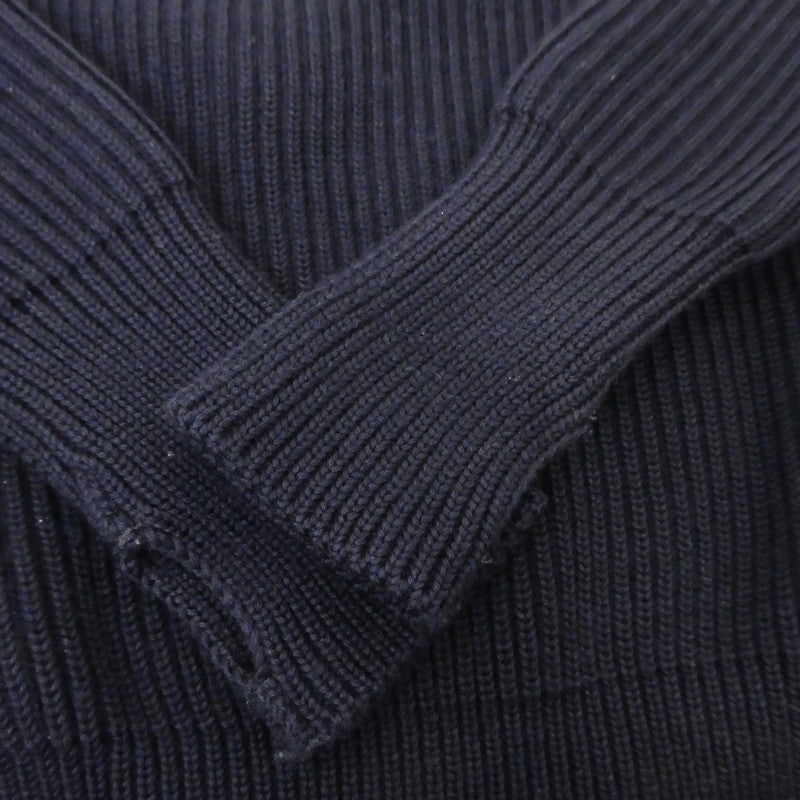 多少のUSED感はありますが、まだまだ着用いただける商品です。 【 主なダメージ箇所 】 全体的に毛羽立ちあり。 袖口毛玉・薄汚れあり。 首元薄汚れあり。 XS 着丈:約60cm 身幅:約44.5cm 肩幅:約39cm 袖丈:約65cm ネイビー 毛100% |