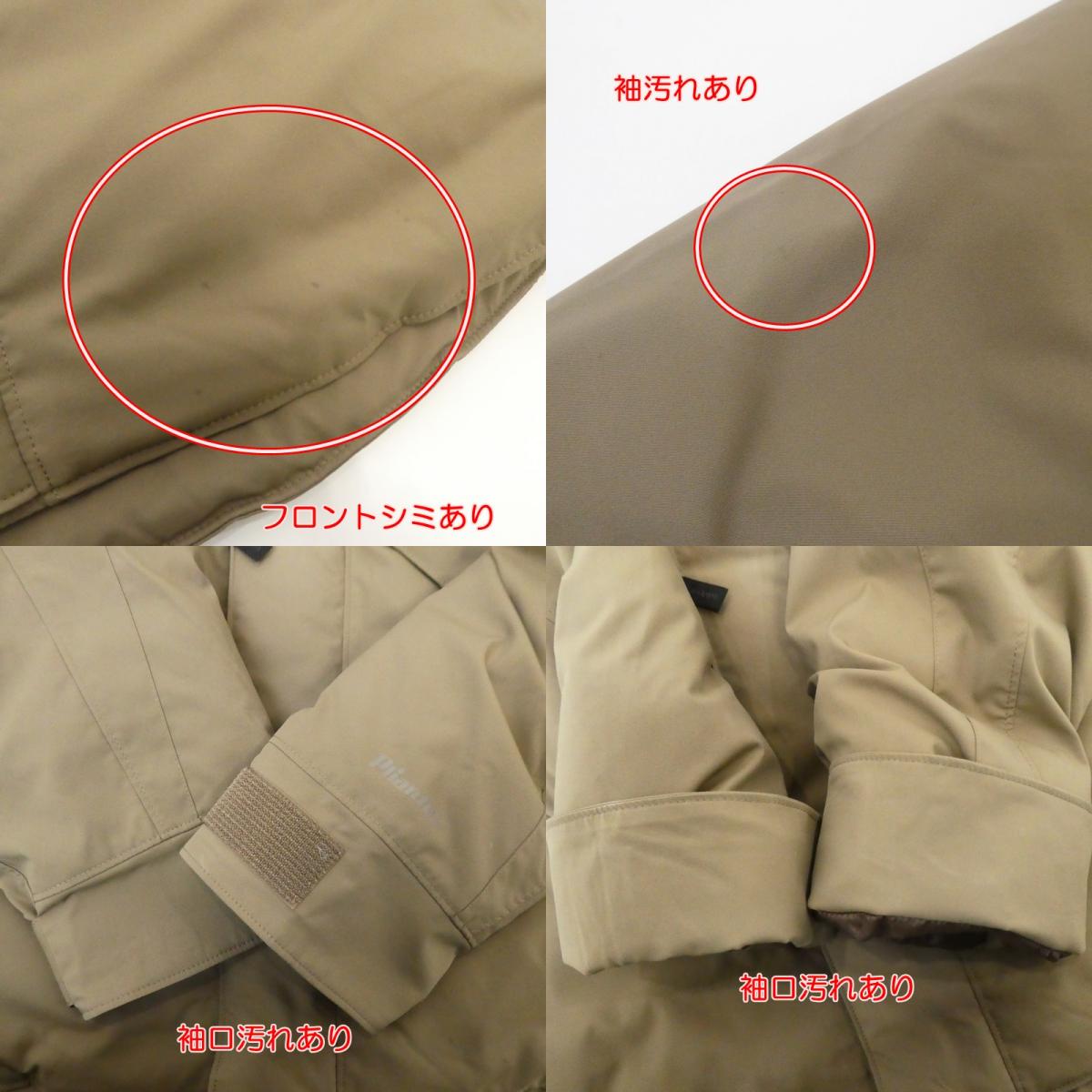 USED感はありますが、まだまだ着用いただける商品です。 【 主なダメージ箇所 】 首元・フード内側:スレ・汚れあり。 首元内側汚れあり。 フードフチ汚れあり。 ロゴ汚れあり。 フロント・右肩シミあり。 袖汚れあり。 XL 着丈:約76cm 身幅:約60.5cm 裄丈:約95.5cm ベージュ 表地:ポリエステル100% 中綿:ダウン80%・フェザー20% 裏地:ポリエステル100% |