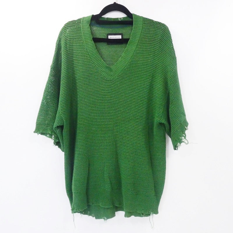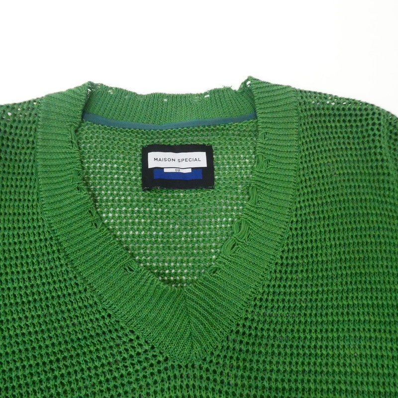 【中古】MAISON SPECIAL | メゾンスペシャル ストローヤーンプライムオーバーダメージメッシュニットVネック ニット 11221361329 グリーン サイズ:2