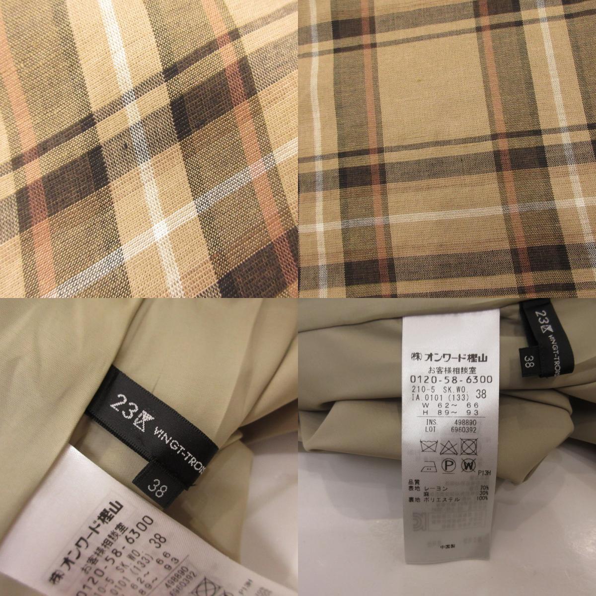 【中古】23ku | 23区 ヴィスコースリネンチェック スカート 6960392 サイズ:38