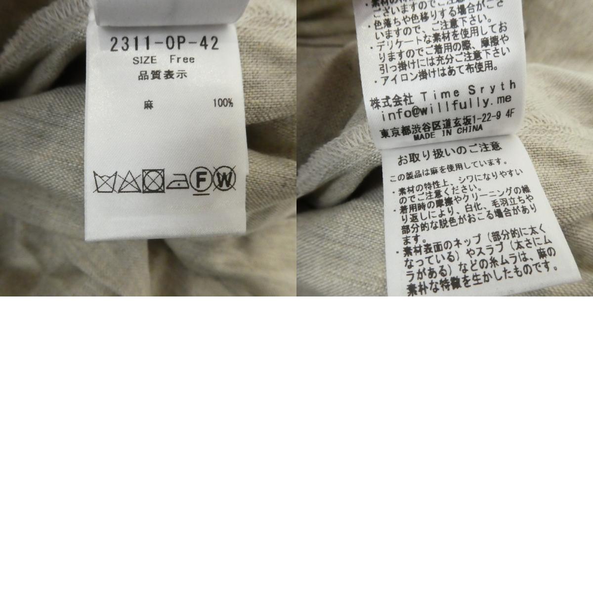 【中古】willfully | ウィルフリー リネンロングワンピース ワンピース 2311-OP-42 オートミール サイズ:FreeSize