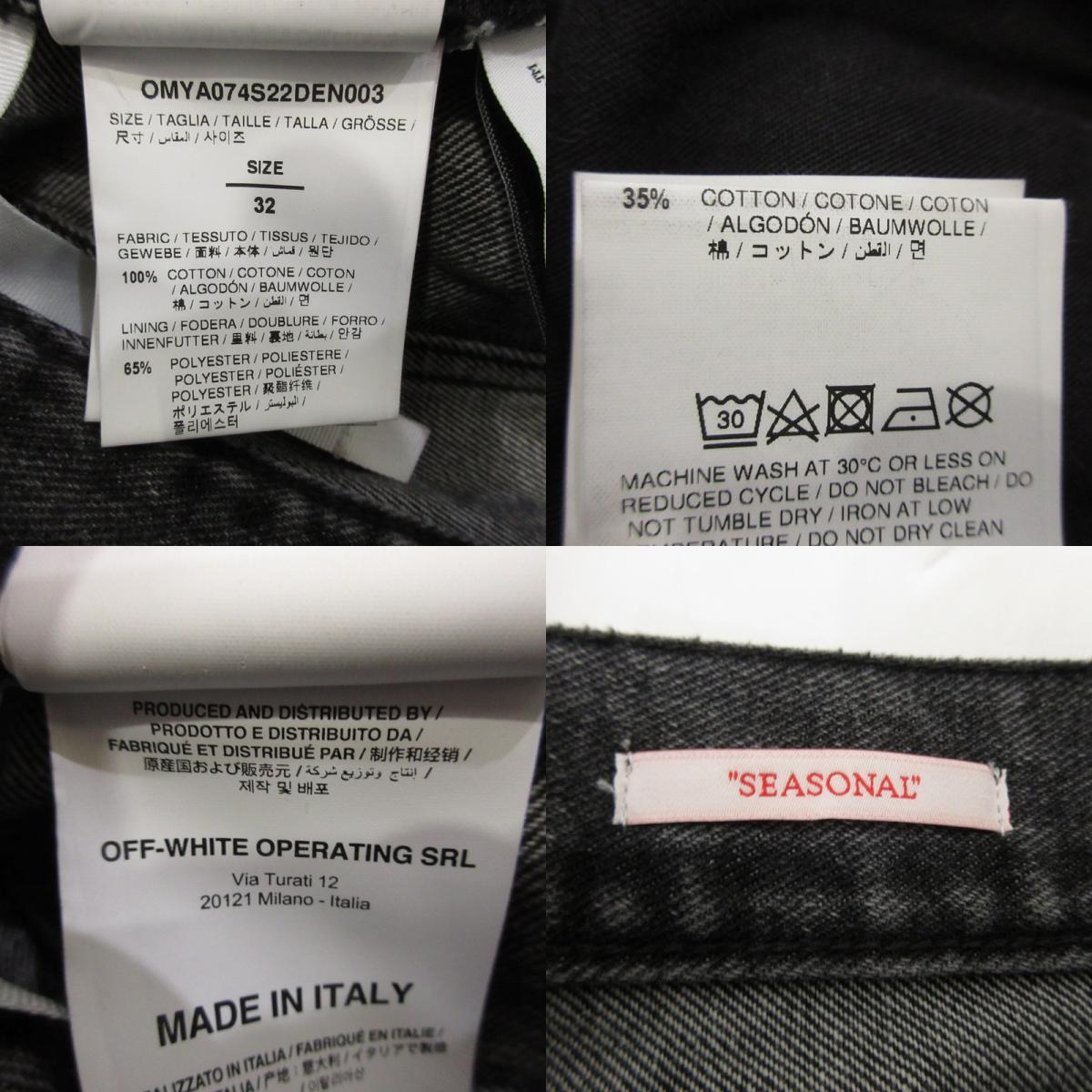 【中古】OFF-WHITE | オフホワイト デニムパンツ OMYA074S22DEN003 2022S/S サイズ:W:32 ブラック