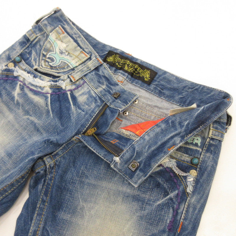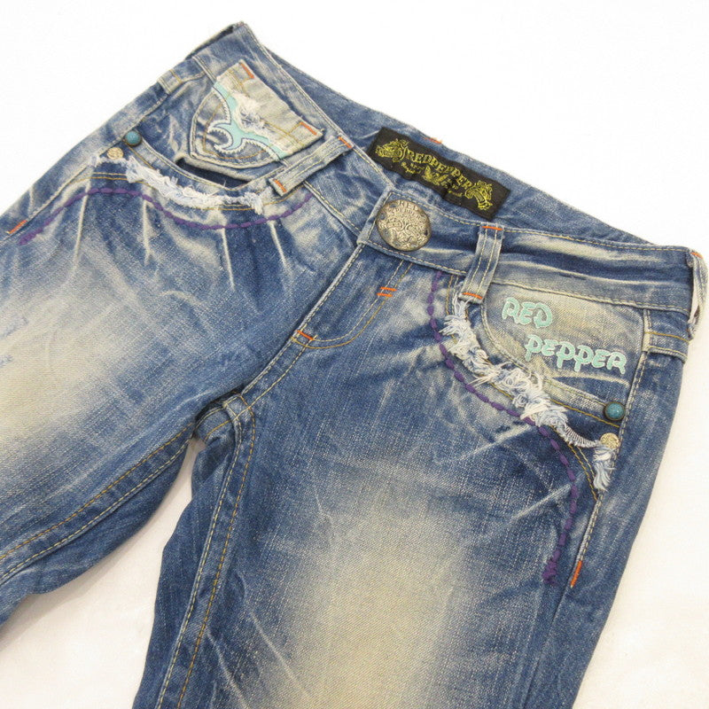 【中古】RED PEPPER | レッドペッパー 刺繍スタッズターコイズブーツカット デニムパンツ 5431/0 ブルー サイズ:26
