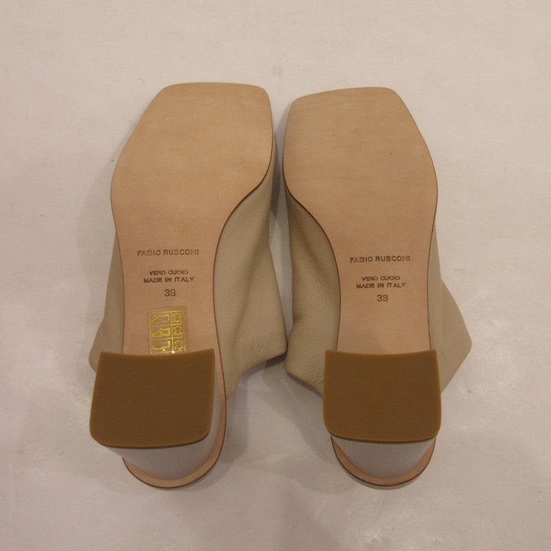【中古】FABIO RUSCONI | ファビオルスコーニ スクエアトウソフトレザーミュールサンダル サンダル F32004 ベージュ