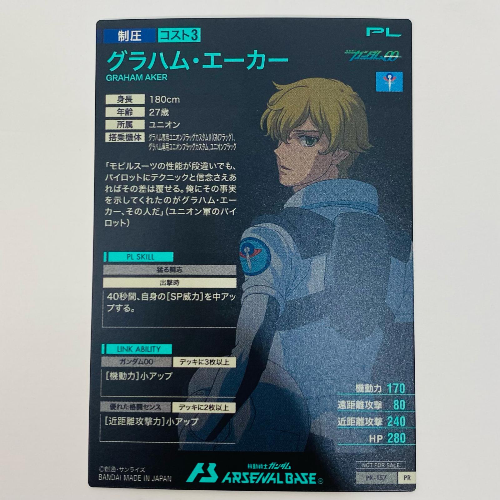 ・型番:PR-157 ・本体重量:約1g ・カードゲーム名:ゲームセンター・ゲームカード その他 ・グレード鑑定:無 ・キャラクター名:グラハム・エーカー |