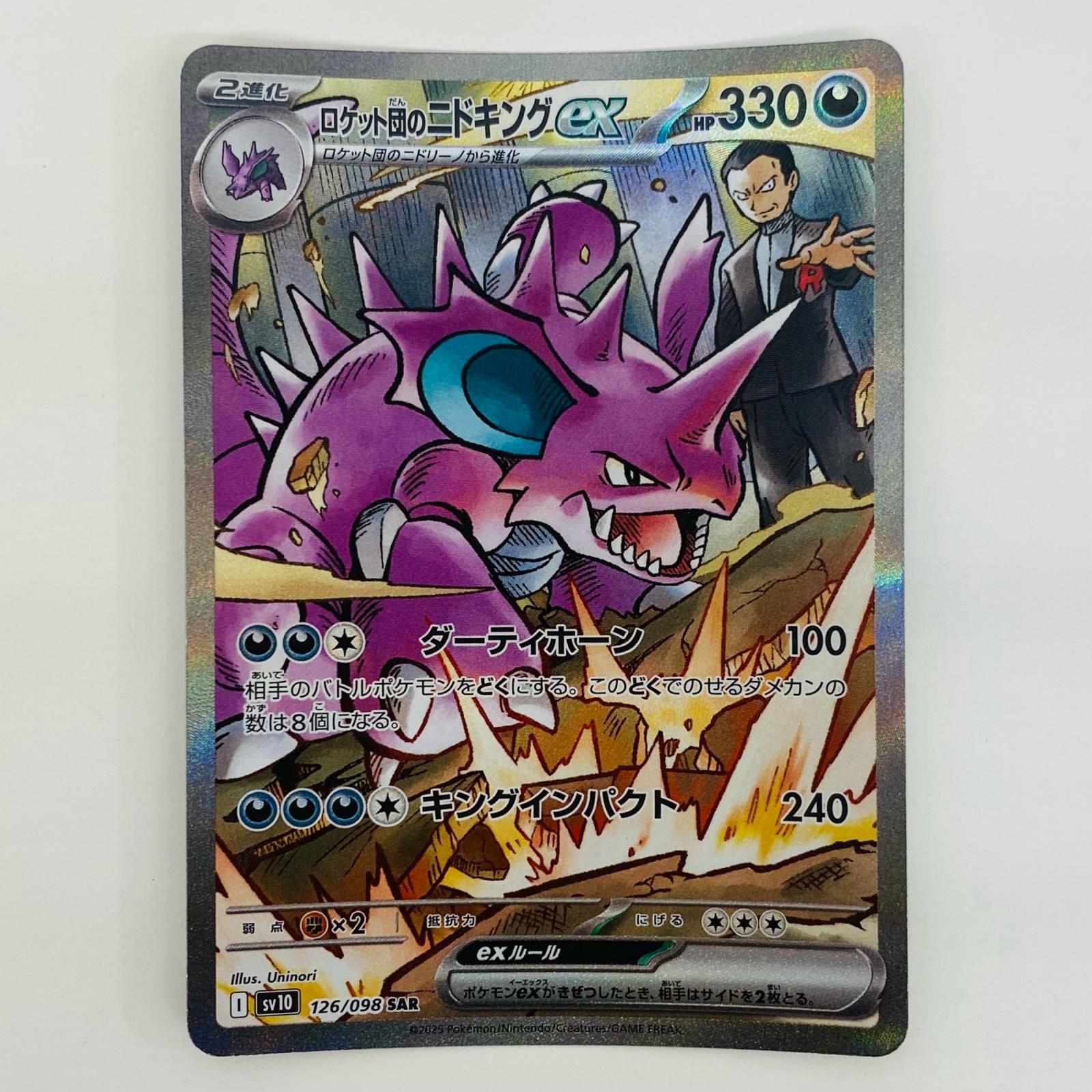 ・型番:SV10-126 ・本体重量:約1g ・カードゲーム名:ポケモンカードゲーム ・グレード鑑定:無 ・キャラクター名:ロケット団のニドキングex |