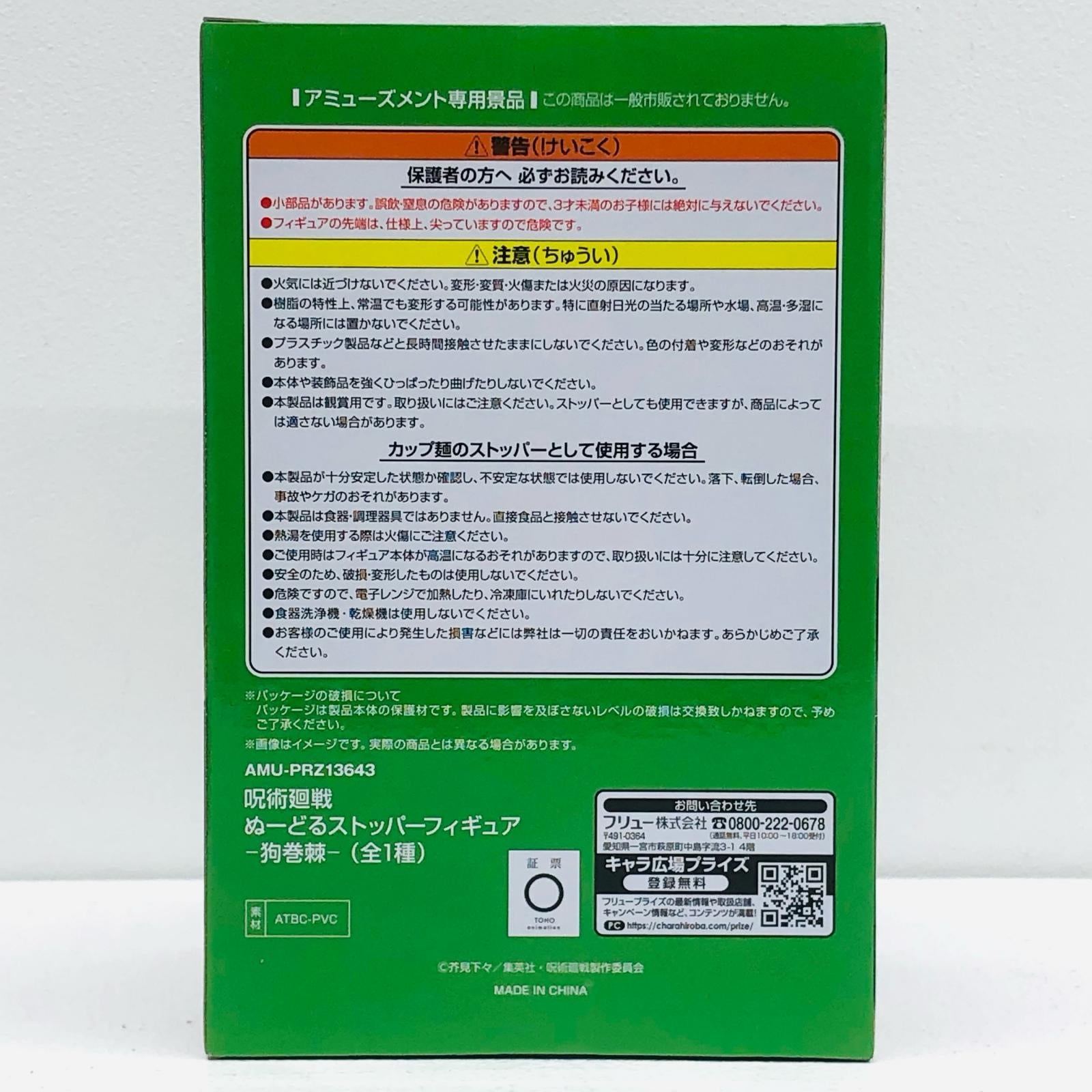 | 表記サイズ | ・本体重量:約174g ・幅:13cm ・高さ:20cm ・奥行:11cm ・作品名:呪術廻戦 ・キャラクター名:狗巻棘 | ||