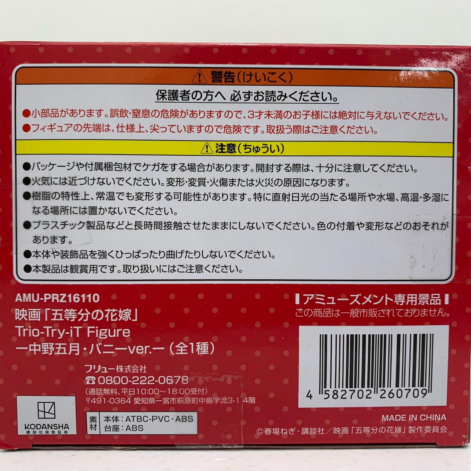 | 商品名 | 【中古】 中野五月「映画五等分の花嫁」Trio-Try-iTFigure-中野五月・バニーver.- 五等分の花嫁 フィギュア 中野五月 Trio-Try-iT AMUPRZ16110 | ||