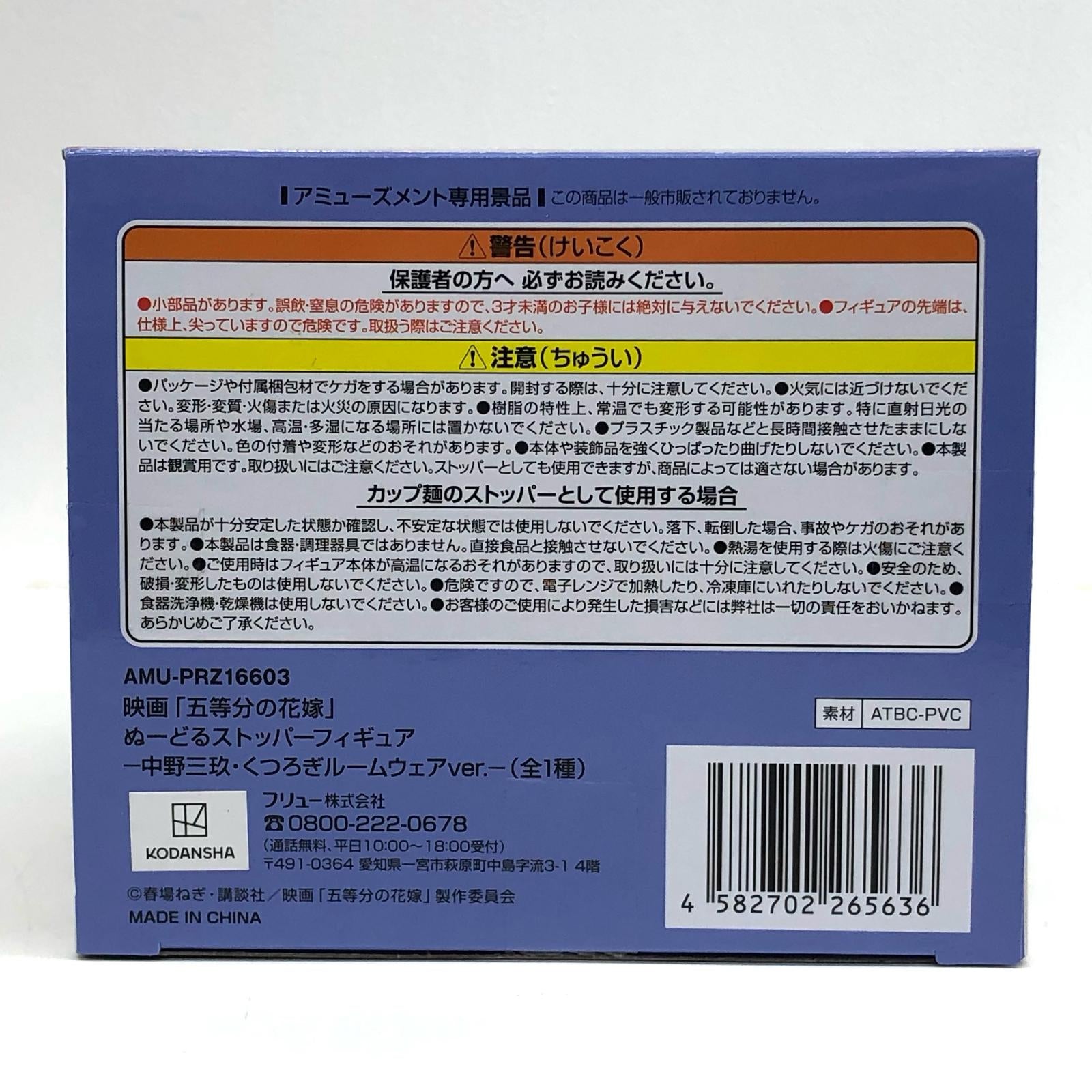 | 表記サイズ | ・型番:AMUPRZ16512 ・本体重量:約210g ・幅:13cm ・高さ:20cm ・奥行:12cm ・作品名:五等分の花嫁 ・キャラクター名:中野三玖 | ||