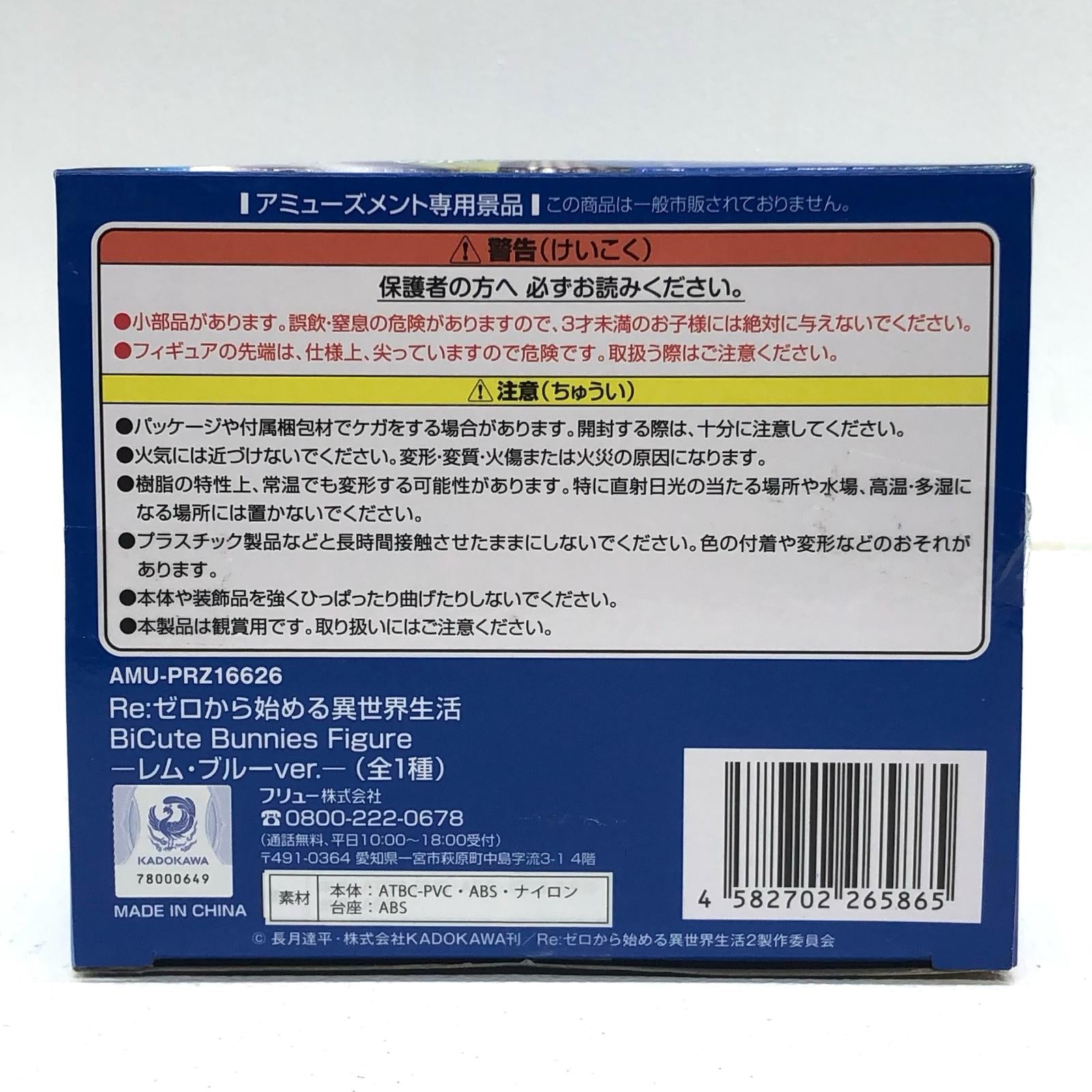 | 表記サイズ | ・型番:AMUPRZ16512 ・本体重量:約300g ・幅:13cm ・高さ:26cm ・奥行:11cm ・作品名:Re:ゼロから始める異世界生活 ・キャラクター名:レム ブルー ver. | ||