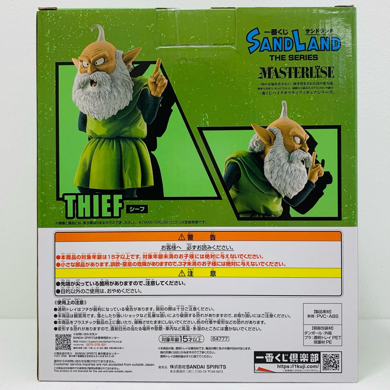・本体重量:約543g ・カード名:B賞シーフ-MASTERLISE「一番くじSANDLAND:THESERIES」 ・幅:20cm ・高さ:24cm ・奥行:15cm ・作品名:SANDLAND ・キャラクター名:シーフ |