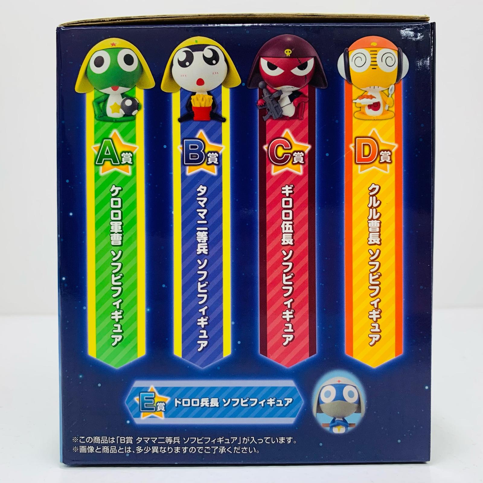 ・本体重量:約324g ・カード名:B賞タママ二等兵-ソフビフィギュア「一番くじケロロ軍曹」 ・幅:13cm ・高さ:14cm ・奥行:12cm ・作品名:ケロロ軍曹 ・キャラクター名:タママ二等兵 ソフビ |