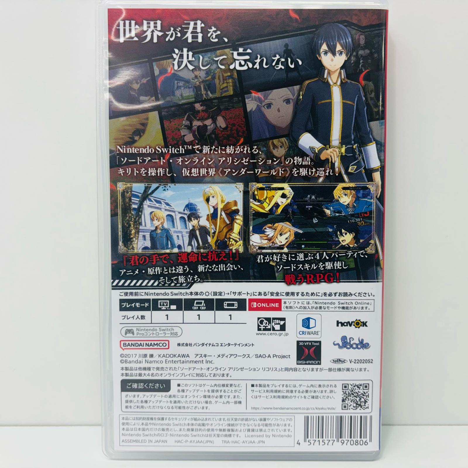 ・型番:HAC-P-AYJAA ・本体重量:約58g ・ゲーム名:ソードアート・オンライン Alicization Lycor |