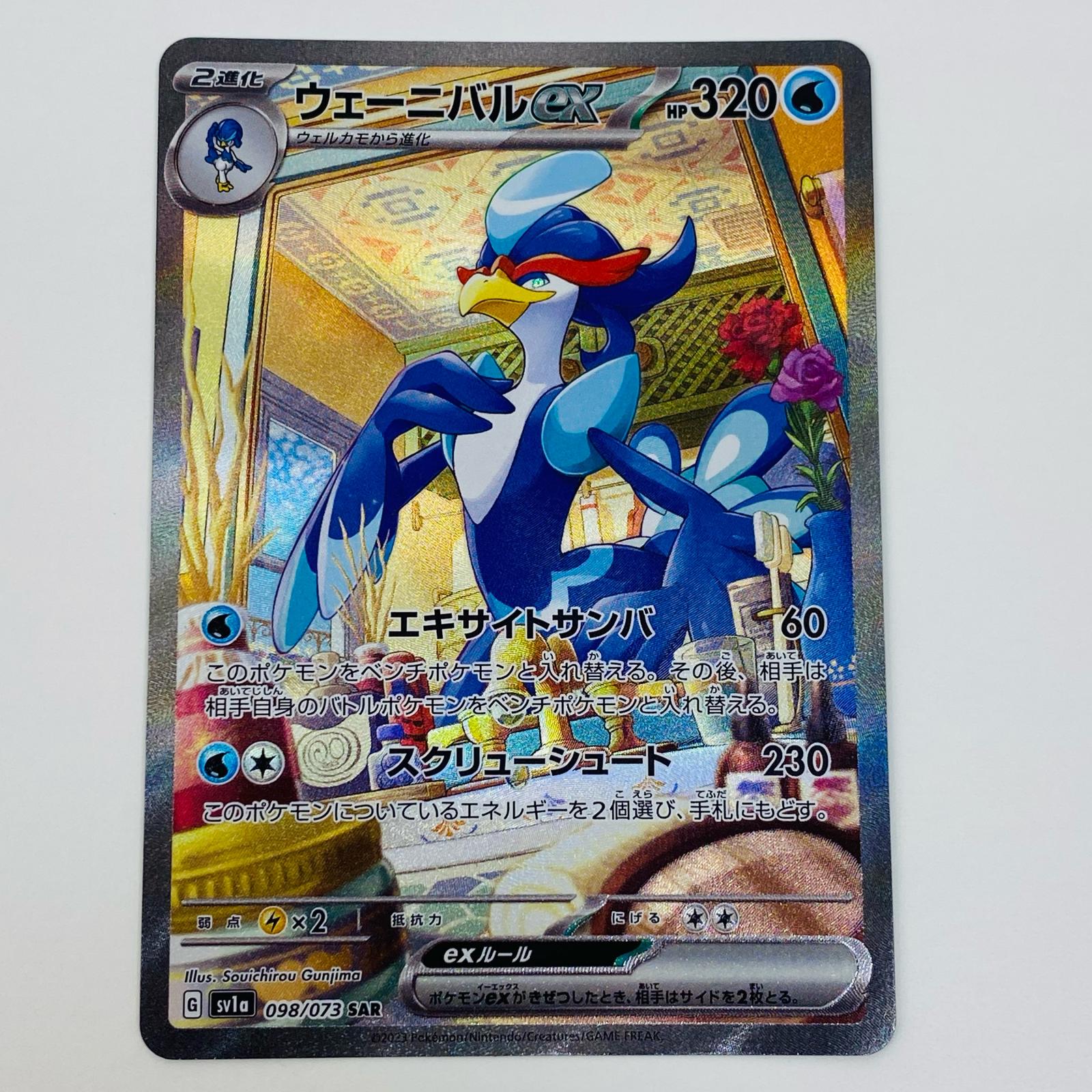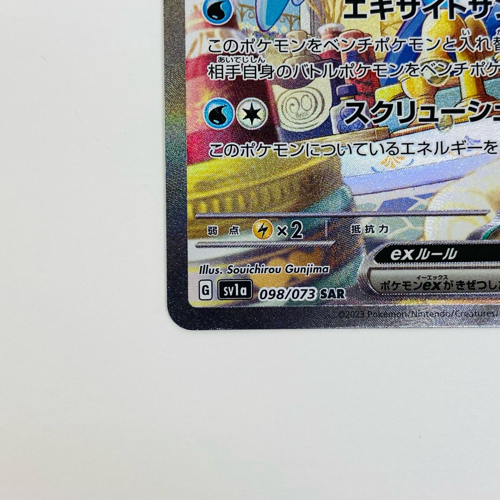 | 表記サイズ | ・型番:SV1a-098 ・本体重量:約1g ・カード名:ウェーニバルex SAR SV1a-098 ・カードゲーム名:ポケモンカードゲーム ・グレード鑑定:無 ・キャラクター名:ウェーニバルex | ||