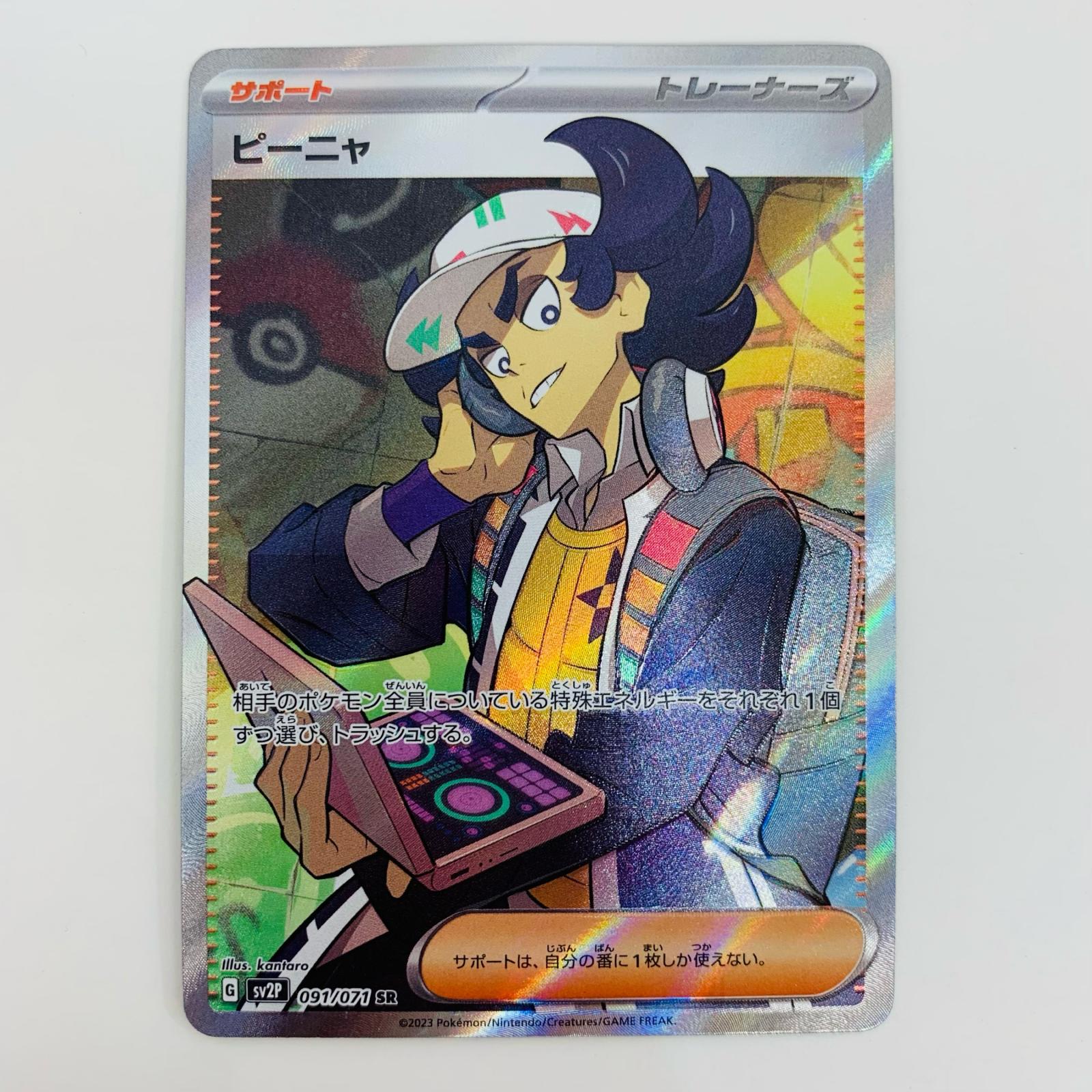 | 表記サイズ | ・型番:SV2P-091 ・本体重量:約1g ・カードゲーム名:ポケモンカードゲーム ・グレード鑑定:無 ・キャラクター名:ピーニャ | ||