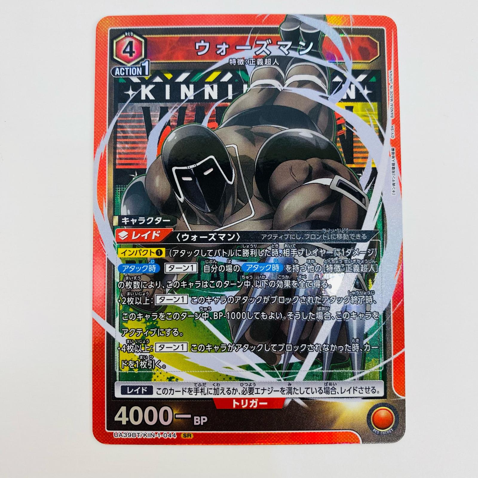 ・型番:UA39BT/KIN-1-044 ・本体重量:約1g ・カード名:ウォーズマン SR UA39BT/KIN-1-044 ・カードゲーム名:UNION ARENA(ユニオンアリーナ) ・グレード鑑定:無 ・キャラクター名:ウォーズマン |