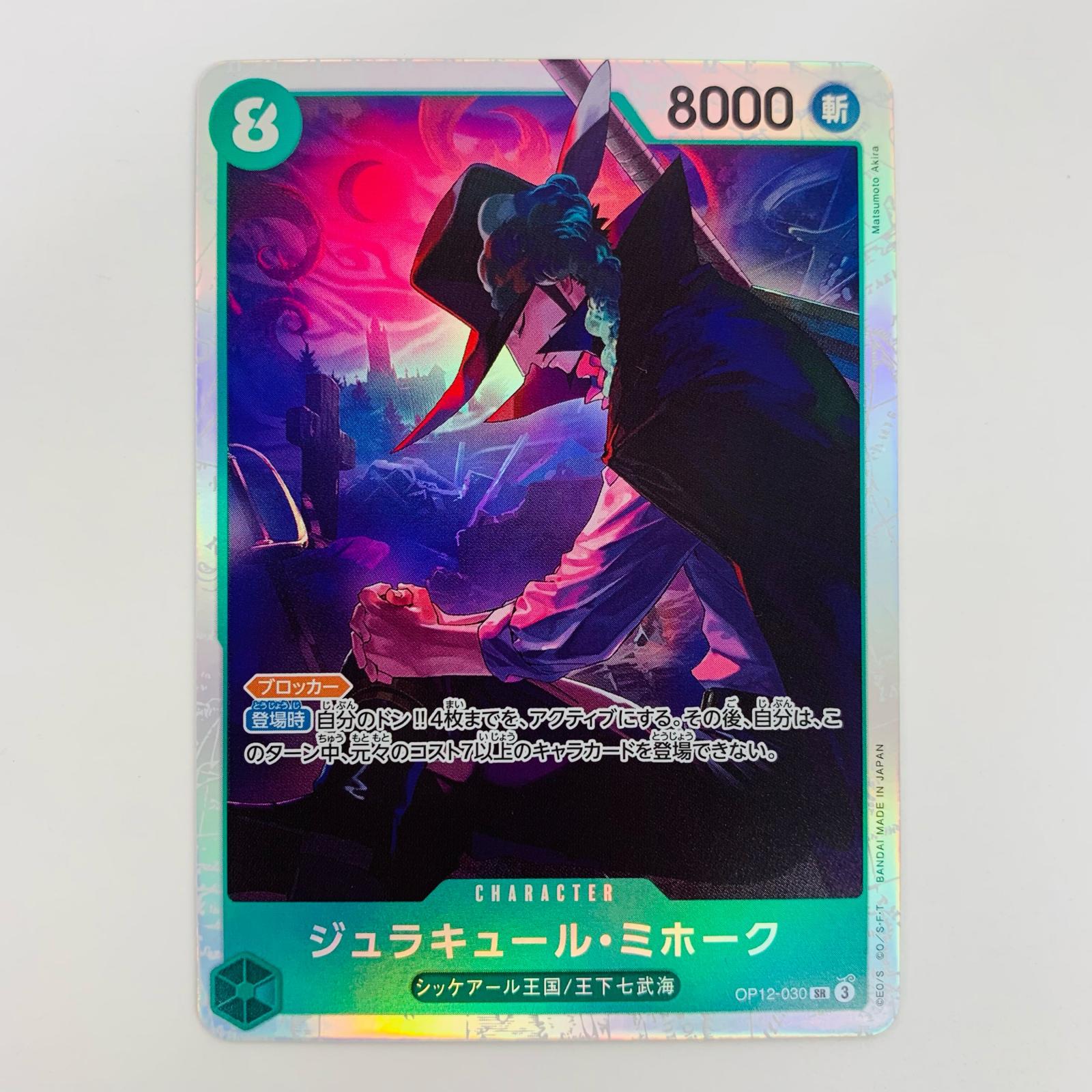 ・型番:OP12-030 ・本体重量:約1g ・カードゲーム名:ワンピース カードゲーム ・グレード鑑定:無 ・キャラクター名:ジュラキュール・ミホーク |