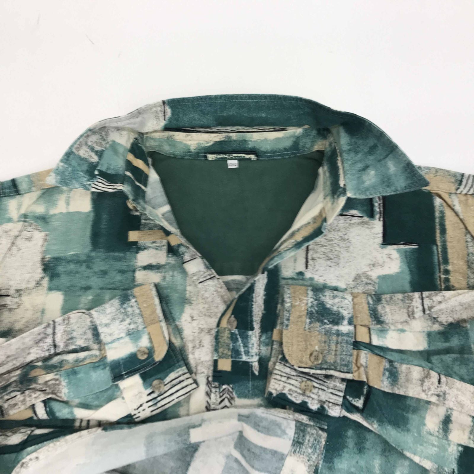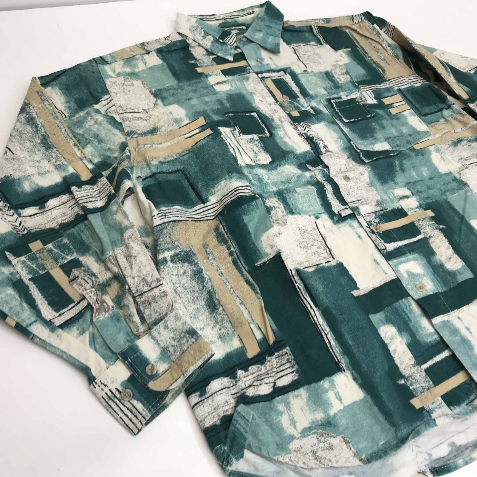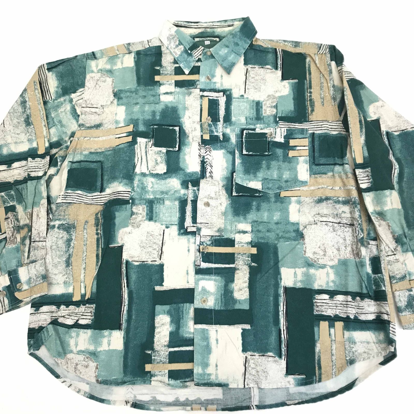 【中古】 長袖シャツ 80? 90年代 総柄シャツ コットンシャツ グリーン系 XXL 長袖 -12 その他【加古川物流】