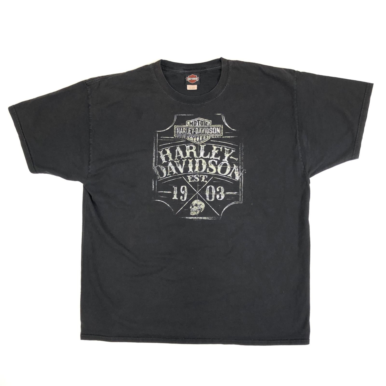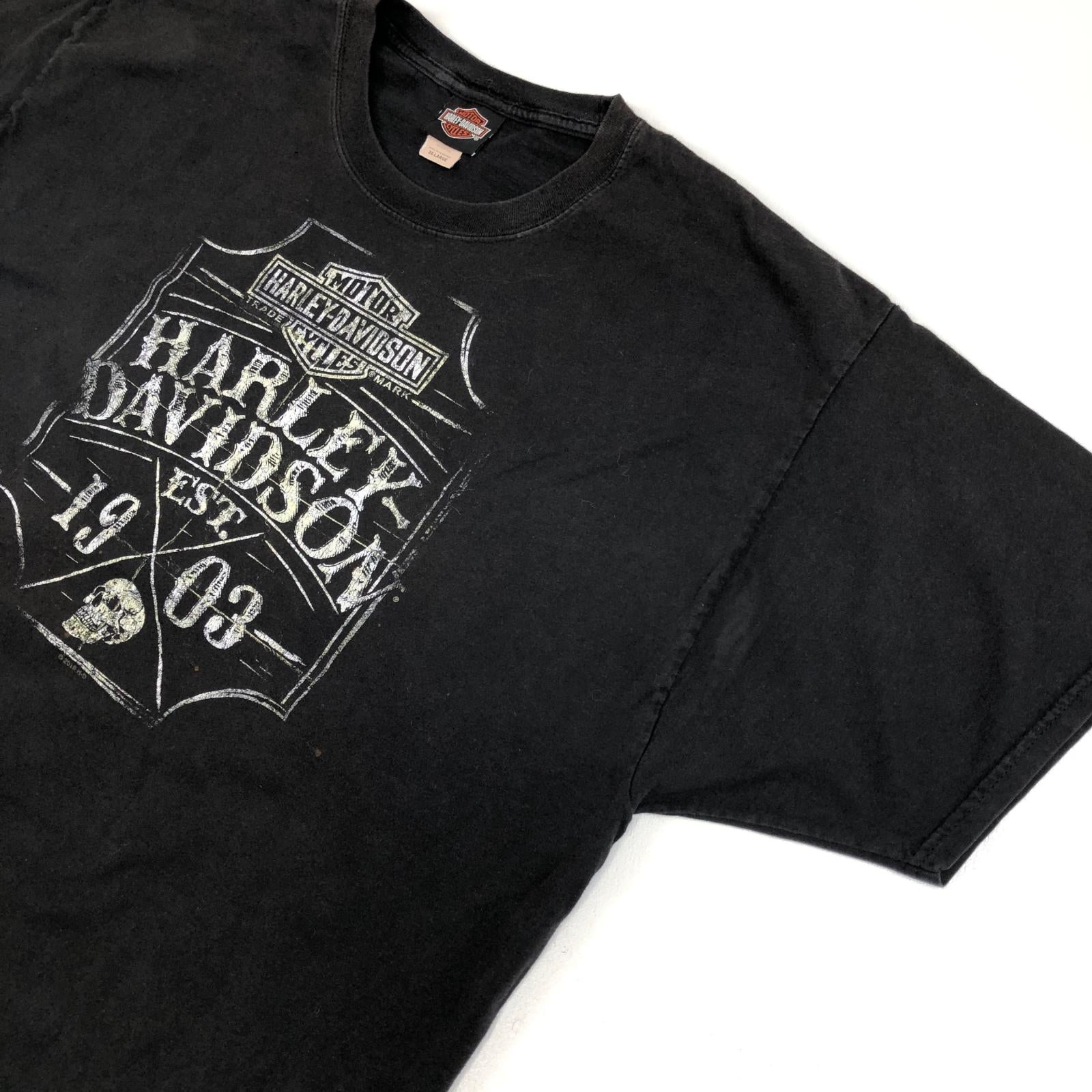 【中古】HARLEY-DAVIDSON | ハーレーダビットソン 00年代 両面プリント スカル ナンバーワンロゴ 半袖Tシャツ 2018年製 ブラック【加古川物流】